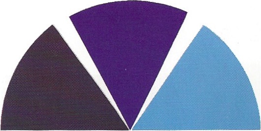 The color wheel is divided into what are considered warm and cool colors. ln the illustration on the opposite page, the warm colors are those 10 the right of yellow at the top and violet at the bottom; cool colors are those to the left of yellow and violet. Pure violet and pure yellow are neither warm nor cool; they represent the borders between the two divisions. A yellow with the smallest amount of orange in it is considered warm, while a yellow with the smallest amount of green in it is considered cool. A reddish violet is warm, a bluish violet is cool. Warm and cool are relative terms, of course; a warm color located near the border between warm and cool is said to be cooler. For example, orange is a warmer color than yellow-orange, while blue-green is cooler than blue-violet.