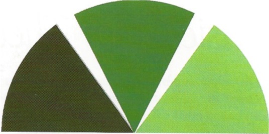 Here, each of the primary and secondary colors is accompanied by a tint (to the right of each hue) and a shade (to the left of each). A tint is a mixture of a pure color and white; a shade is a mixture of a pure color and black. It is helpful when you are mixing colors to see the pure color within its tint or shade.