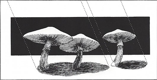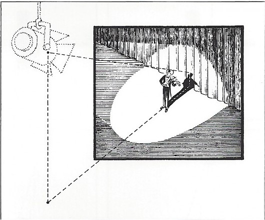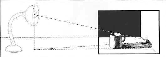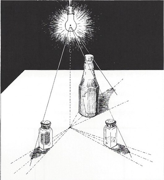 When the light source is off the page, its position must be imagined to calculate the length and direction of cost shadows within the picture.
