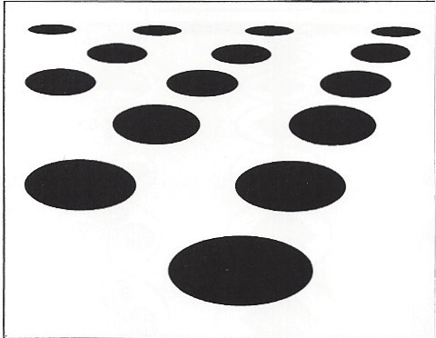 Here, the smaller, narrower ellipses give the impression of being in the distance, while the wider and larger ellipses seem close to the viewer. These shapes are arranged to imply a flat horizontal plane.