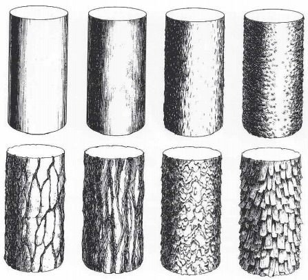 These differently textured cylinders are shown in the same lighting conditions. Notice how texture is obscured in the highlight and shadow areas. The best place to see, and thus depict, the texture of objects is in areas of transition from light to shadow. Study the ways various textures have been handled in this chapter and see which ones you can adapt to your own drawing techniques.
