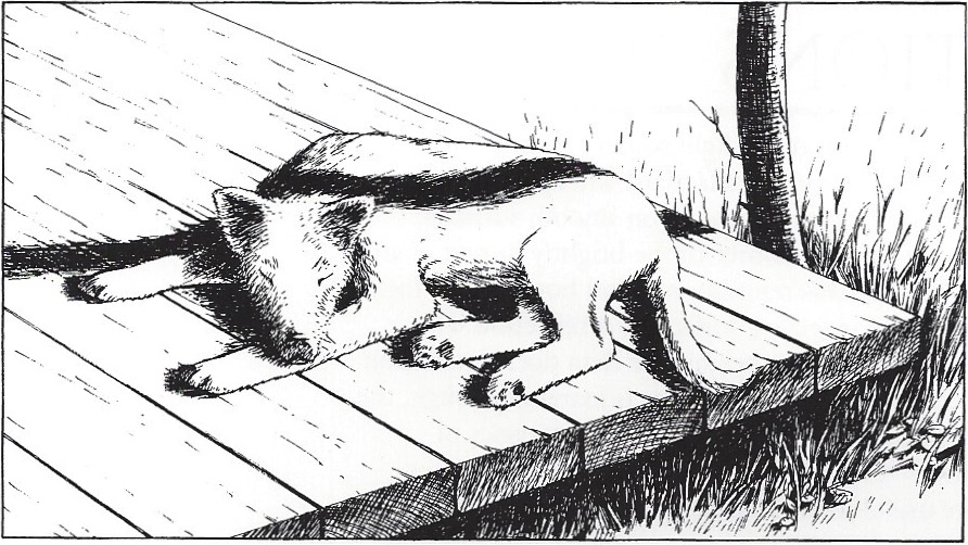 The edge of a cast shadow is also a place where we look for information about the texture of a surface. For instance, a cast shadow falling across a dog sleeping on a wooden deck has subtle variations in its edges that help define the texture of both the dog's fur and the wood. Points to remember about texture include: